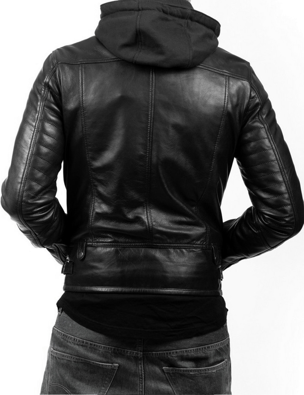 Ανδρικό δερμάτινο από sheep napa με αποσπώμενη κουκούλα, biker style.