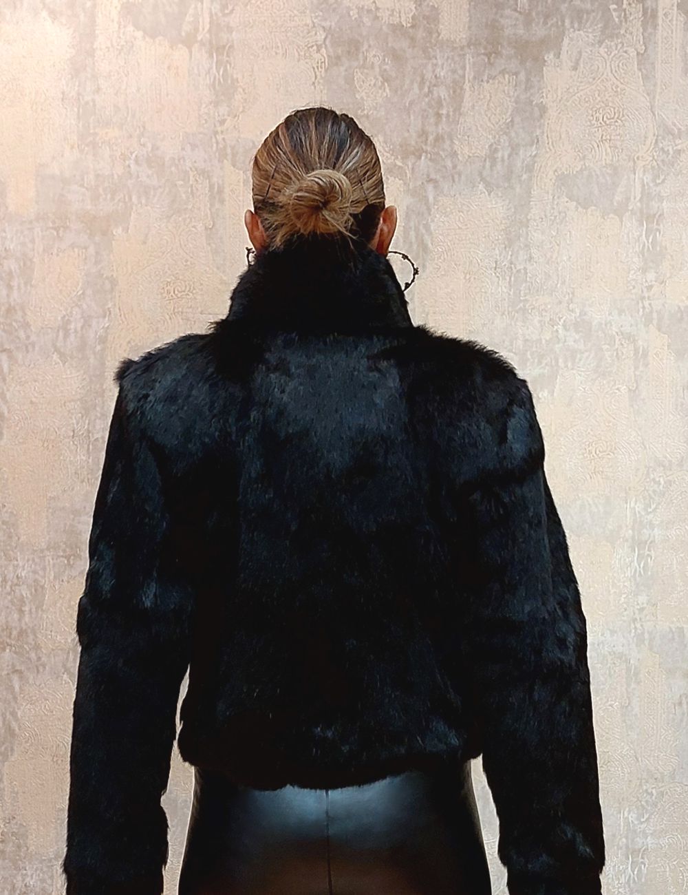 Γούνα Rex σταυροκούμπωτη μαύρη,
