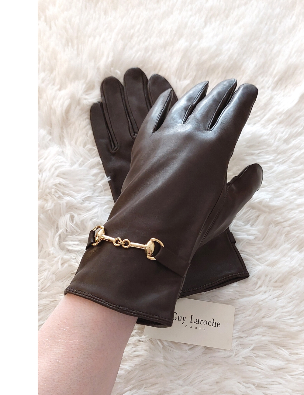 Γυναικεία δερμάτινα γάντια Guy Laroche καφέ