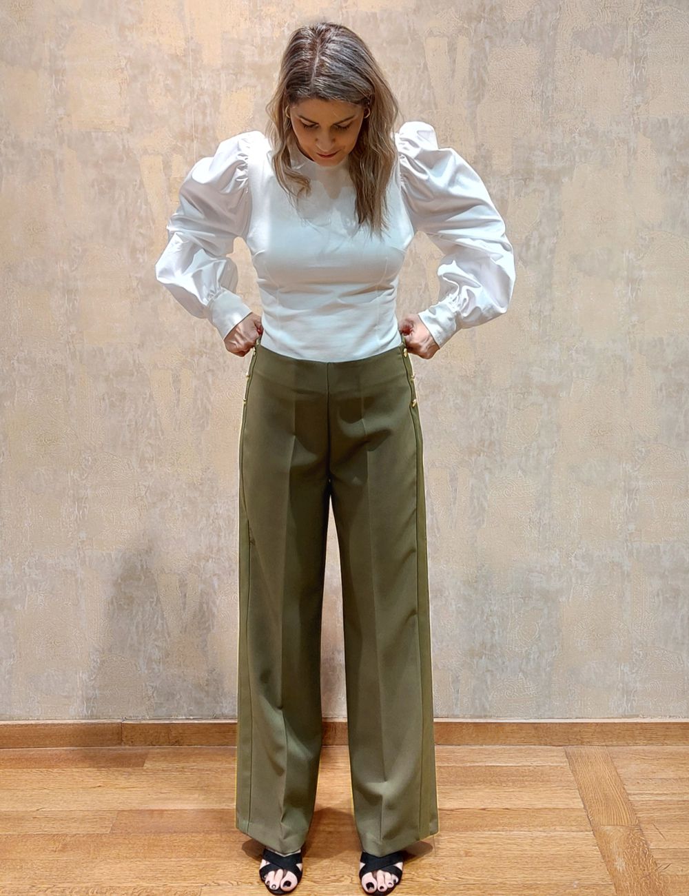 Παντελόνι ίσιο, με διακοσμητικά πλαϊνά κουμπιά και διακοσμητική ρίγα