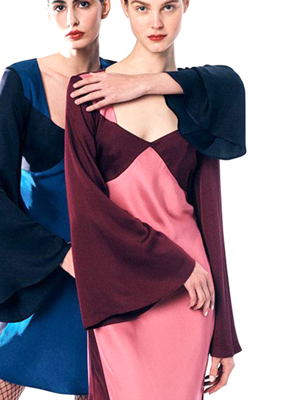 φόρεμα μάξι , δίχρωμο μακρυμάνικο