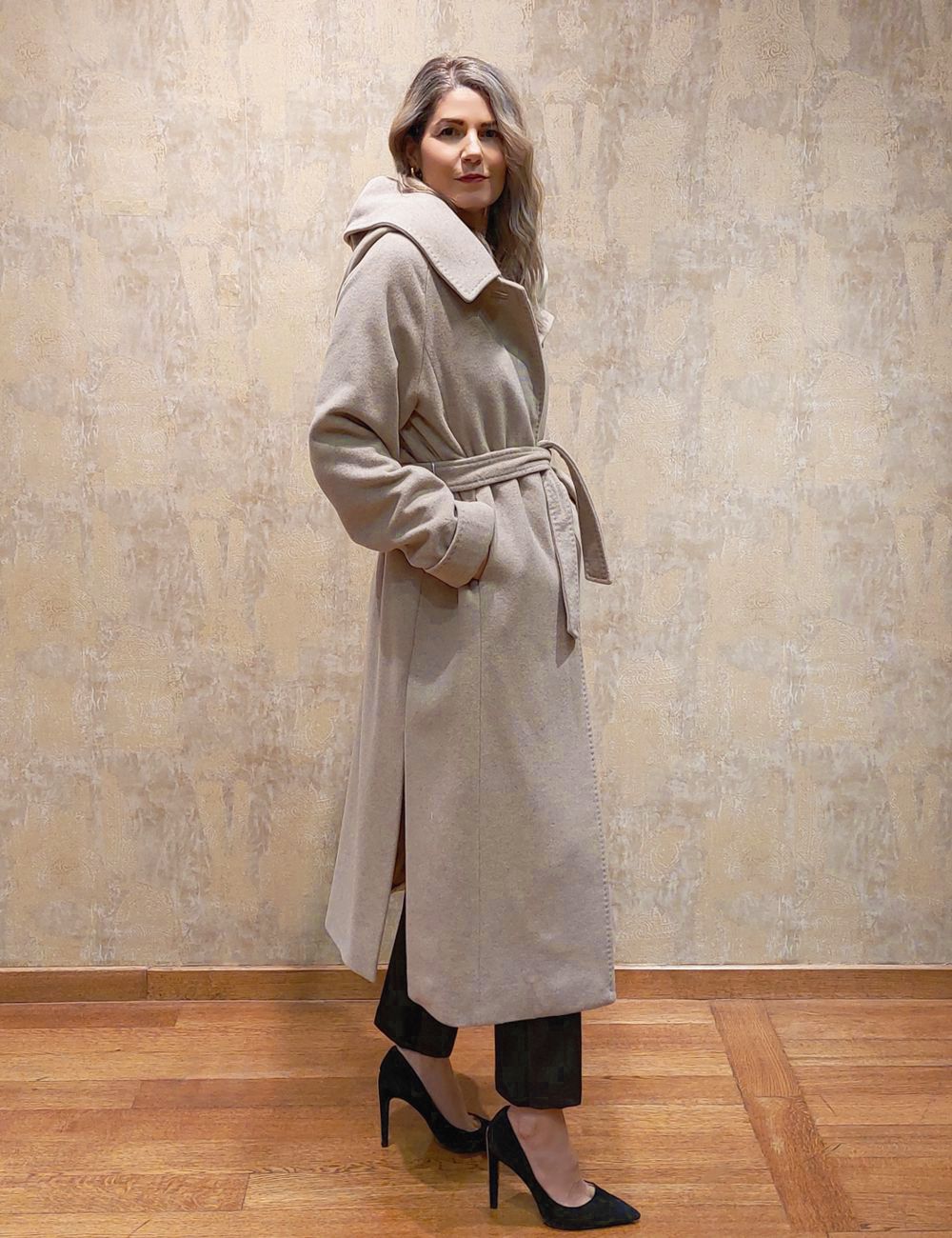 Women’s long coat, iconic in wool