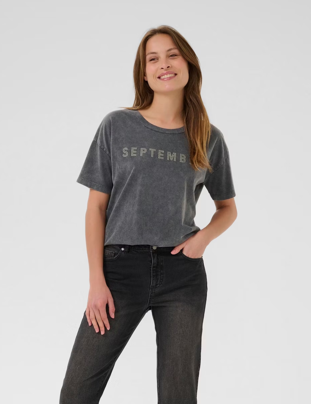 T-shirt γκρι, από μαλακό βαμβάκι και logo ” SEPTEMBER”